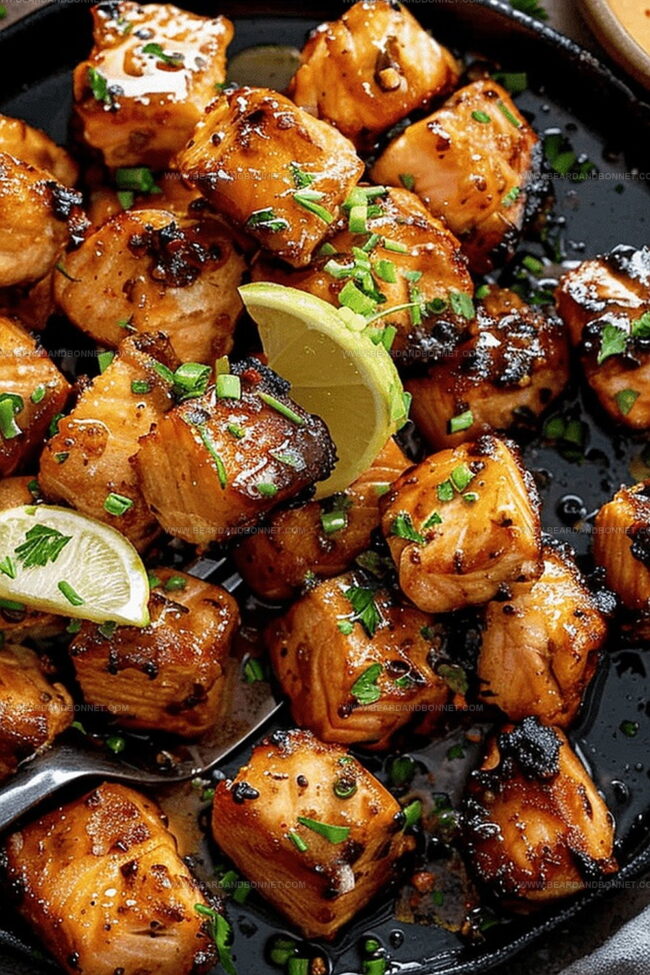 - Scoop out half of this sauce and set it aside for later. 6. Coat the salmon bites with the remaining sauce mixture.