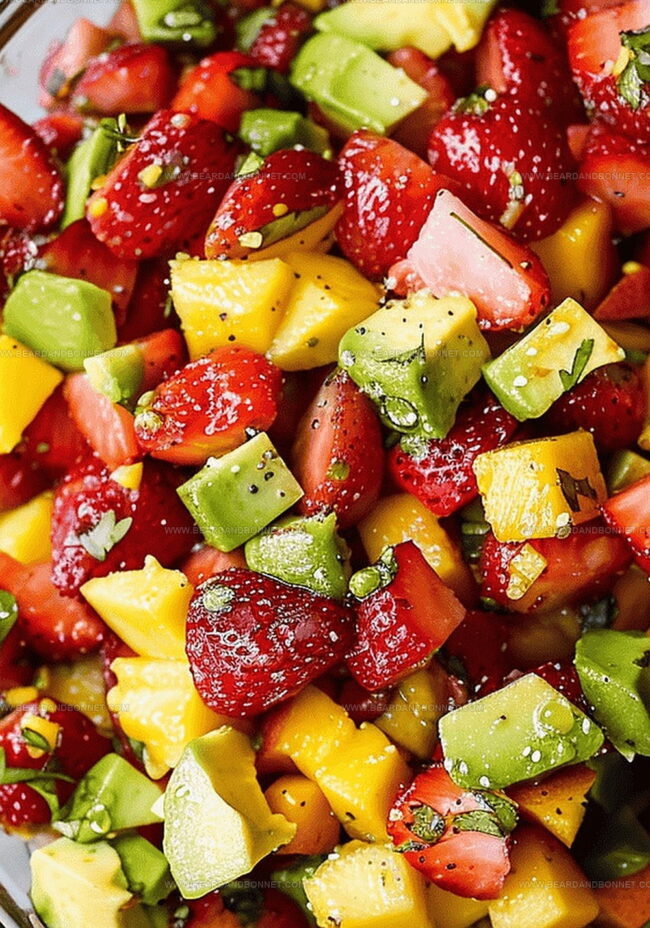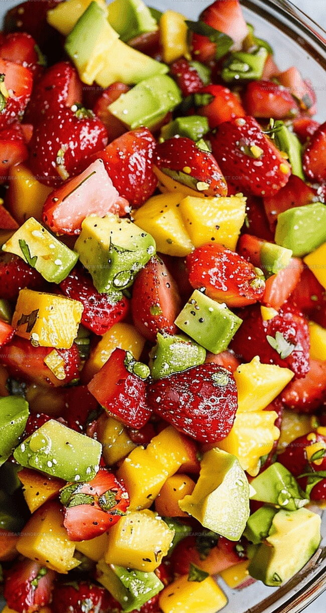 Strawberries, Mango: Sweet and juicy fruits that provide a bright, tropical base for the salsa with natural sweetness and vibrant color.