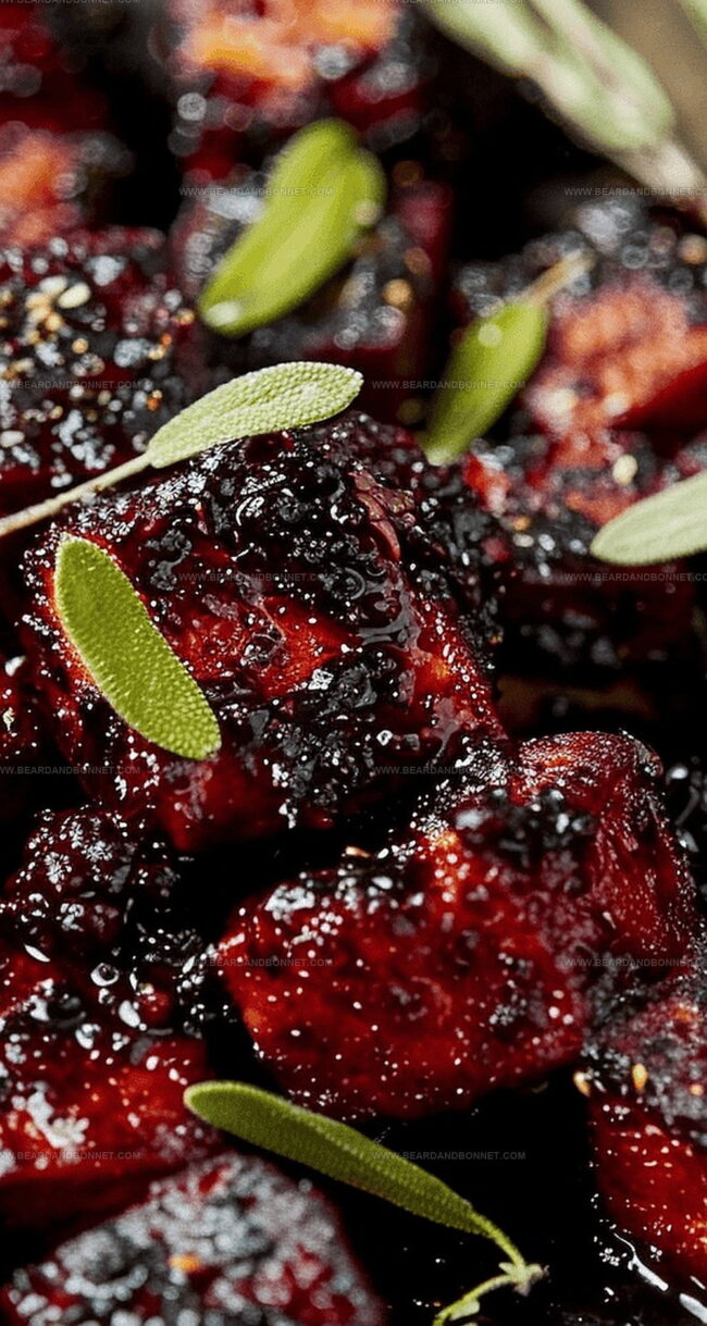 - Blackberry Glaze Creation: Combine blackberries, balsamic vinegar, maple syrup, ground black pepper, chili flakes, ginger, and salt in a saucepan, simmering while gently crushing blackberries to develop a jam-like consistency.