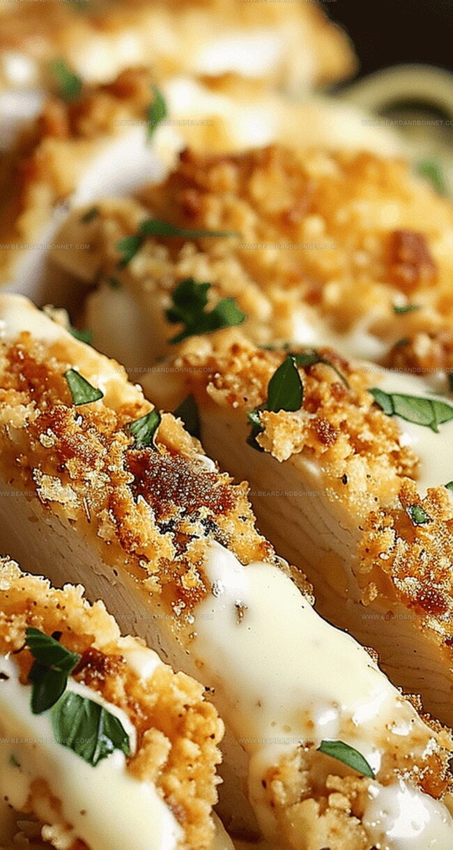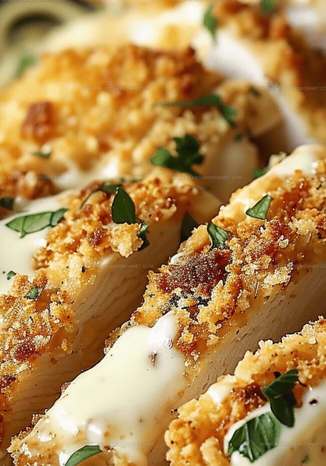 - Culinary Assembly: Arrange crisp-baked chicken atop pasta, cascade the velvety Alfredo sauce generously, and crown with finely chopped parsley for a vibrant, aromatic finish.