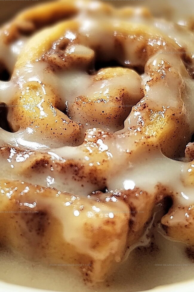 Soft layers of sweet cinnamon rolls meld together in a creamy, delightful blend of flavors.