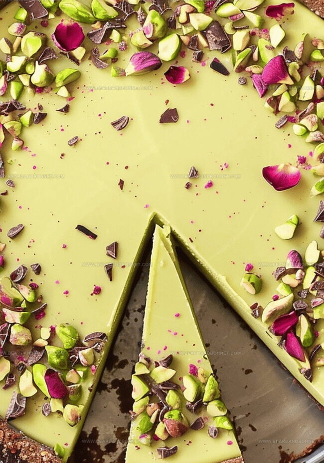 - Final Touches: Remove the tart from the springform pan while frozen, garnish with chopped pistachios, dark chocolate shavings, and dried rose petals. Thaw at room temperature for 30-40 minutes before serving to achieve perfect creamy texture.
