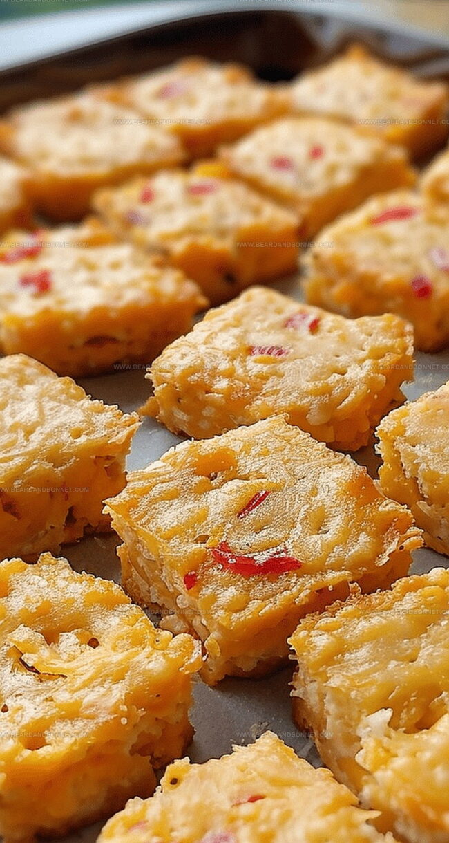 Reviving Crispness: When ready to serve chilled or frozen bites, reheat briefly in a 350°F oven for 3-4 minutes. This quick warming restores their original crunch and brings out the rich cheese and pimento flavors, making them taste freshly baked.