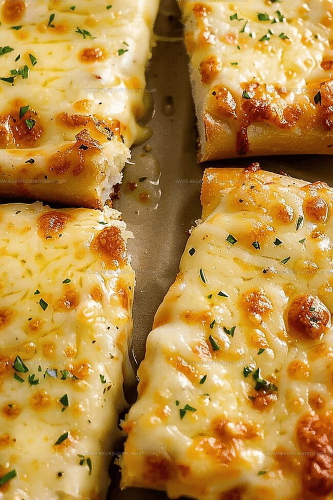 Melted cheese creates a luxurious blanket over perfectly seasoned bread, elevating simple ingredients into something extraordinary.