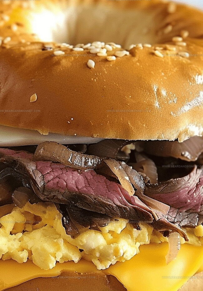 Breakfast transforms from ordinary to extraordinary with this irresistible steak and egg bagel bliss that promises pure morning satisfaction.