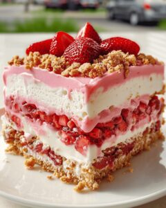 Soft, pillowy cake layers dance with luscious strawberry cream, creating a dessert that’s both elegant and irresistible.