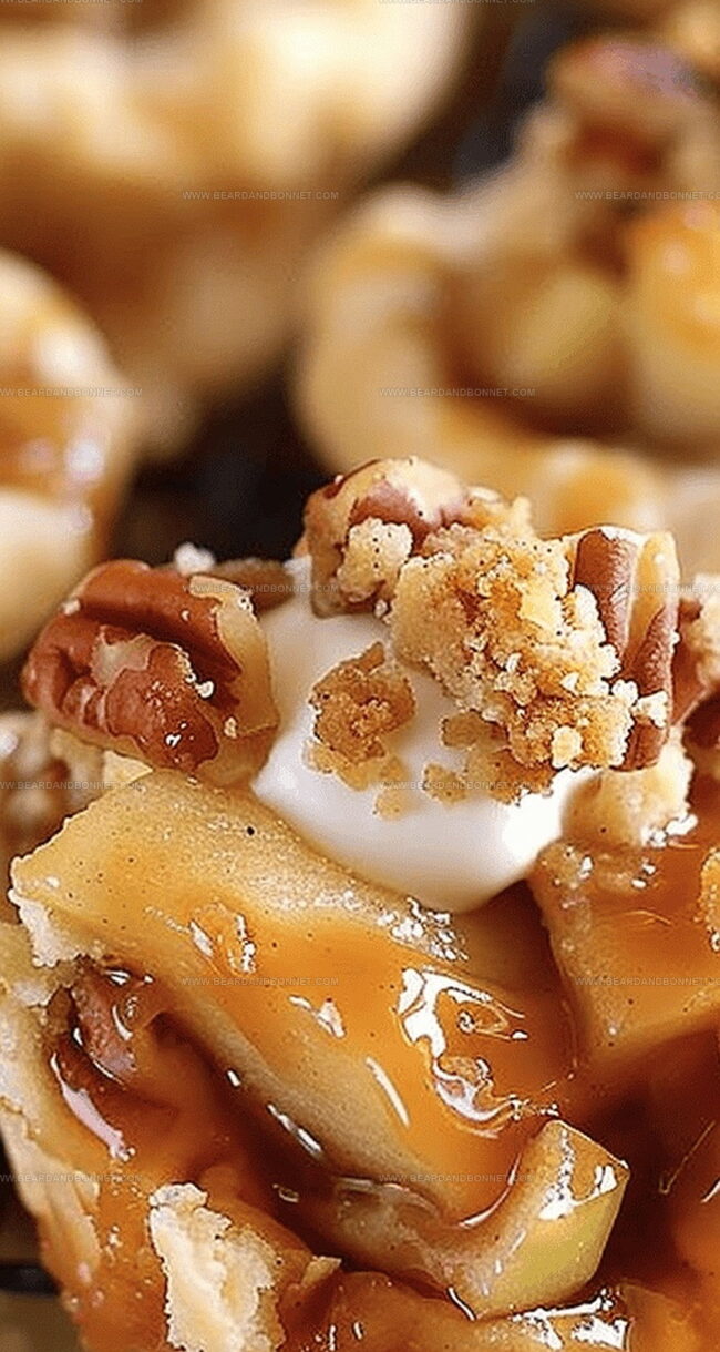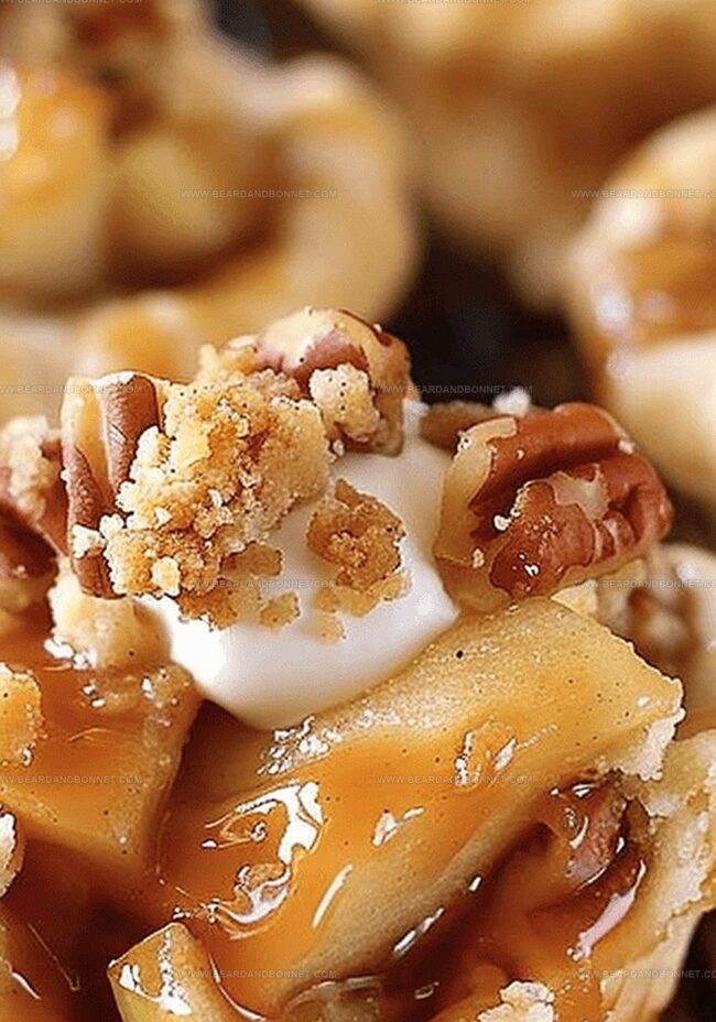 - Assembly and Baking: Distribute cooled apple filling evenly among pie crusts. Generously sprinkle pecan crumble topping over each mini pie. Bake in preheated oven for 15-20 minutes until golden brown and crisp.