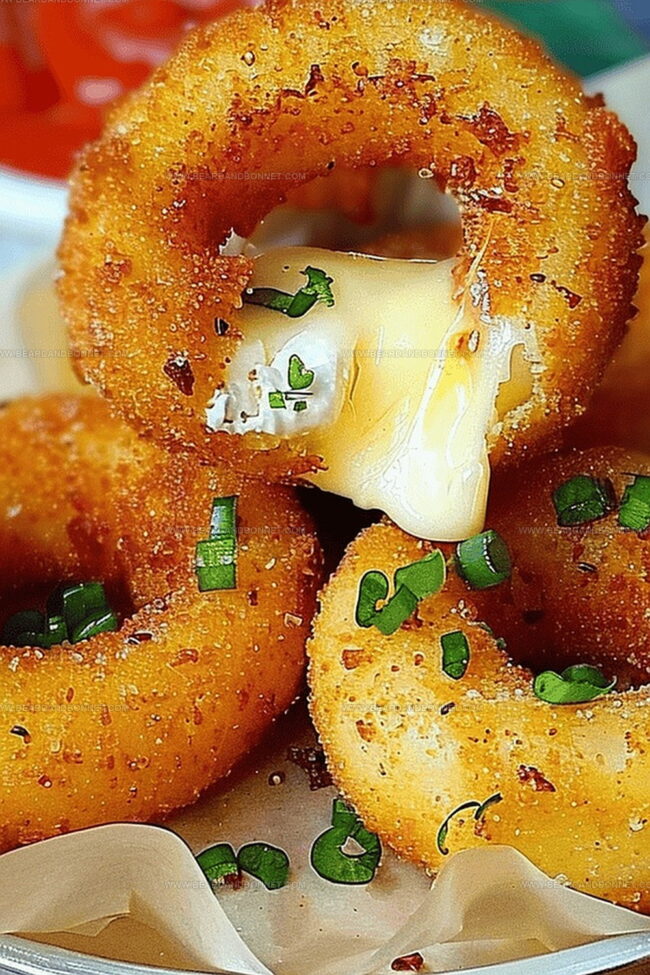 Ranch-Infused Breading: Mix ranch seasoning into the breadcrumbs for a tangy flavor profile that complements the cheesy onion rings.