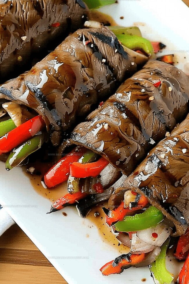 Rosemary balsamic glazed steak rolls deliver a luxurious flavor adventure from Italian culinary traditions. Tender beef strips wrapped around crisp vegetables create an elegant meal that impresses guests with minimal kitchen effort.
