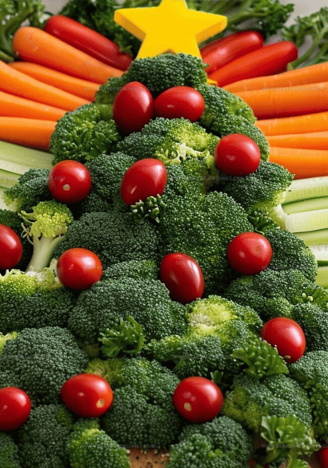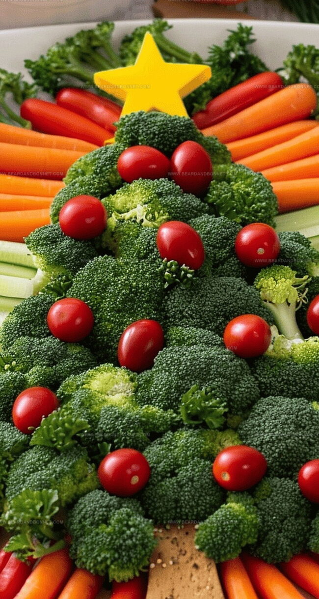 - Ornamental Accents: Distribute cherry tomatoes throughout the broccoli structure, introducing vibrant red elements that resemble classic holiday decorations.
