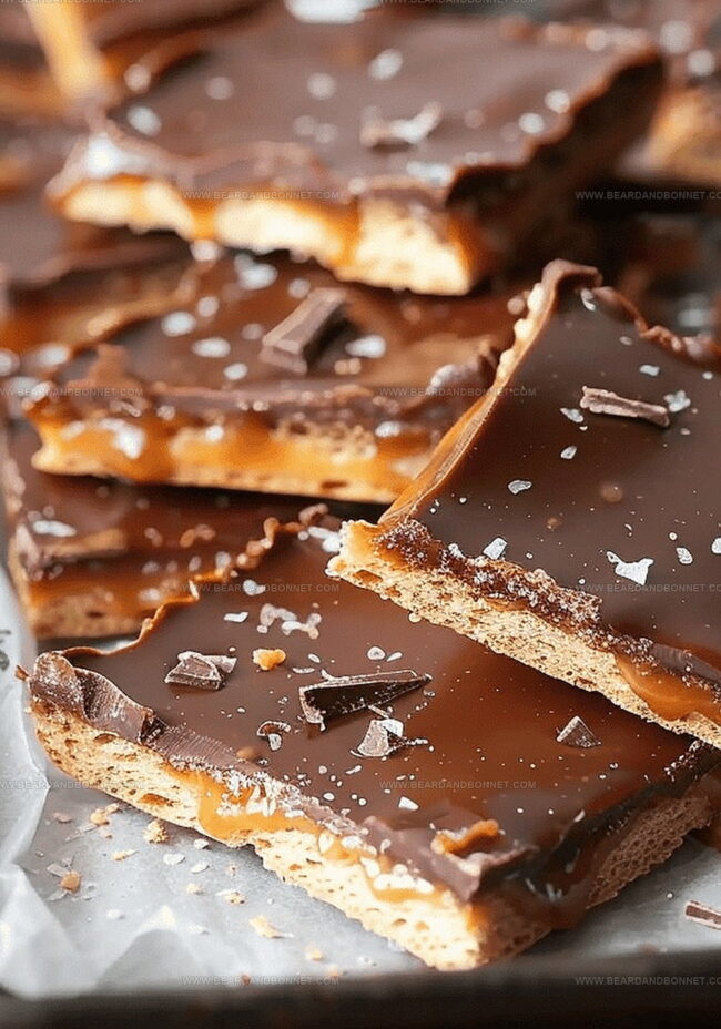 - Finishing and Setting: Once base slightly cools, spread liquefied chocolate across caramel layer using a spatula to create a flawless, even coating. Allow confection to settle at room temperature, then refrigerate overnight. After complete solidification, carefully extract candy slab, remove foil, and slice into elegant, bite-sized pieces.