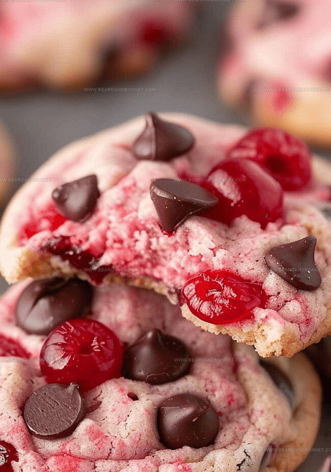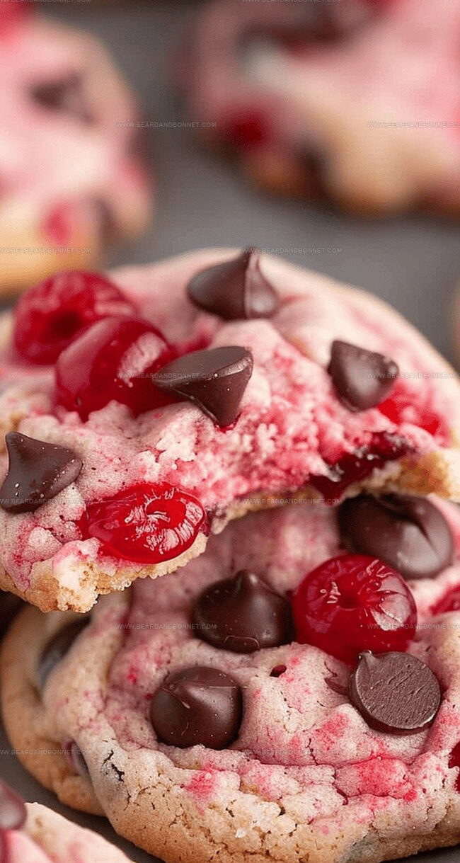 Precision Placement: Strategically embed extra chocolate chips and cherry pieces on cookie exteriors for enhanced visual and flavor appeal.