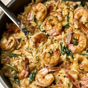 Tuscan shrimp and orzo skillet brings Mediterranean warmth to your dinner table with creamy, herb-infused pasta and succulent shrimp. Rich garlic, sun-dried tomatoes, and fresh spinach combine in this quick one-pan wonder that whisks you straight to Italian coastal charm.