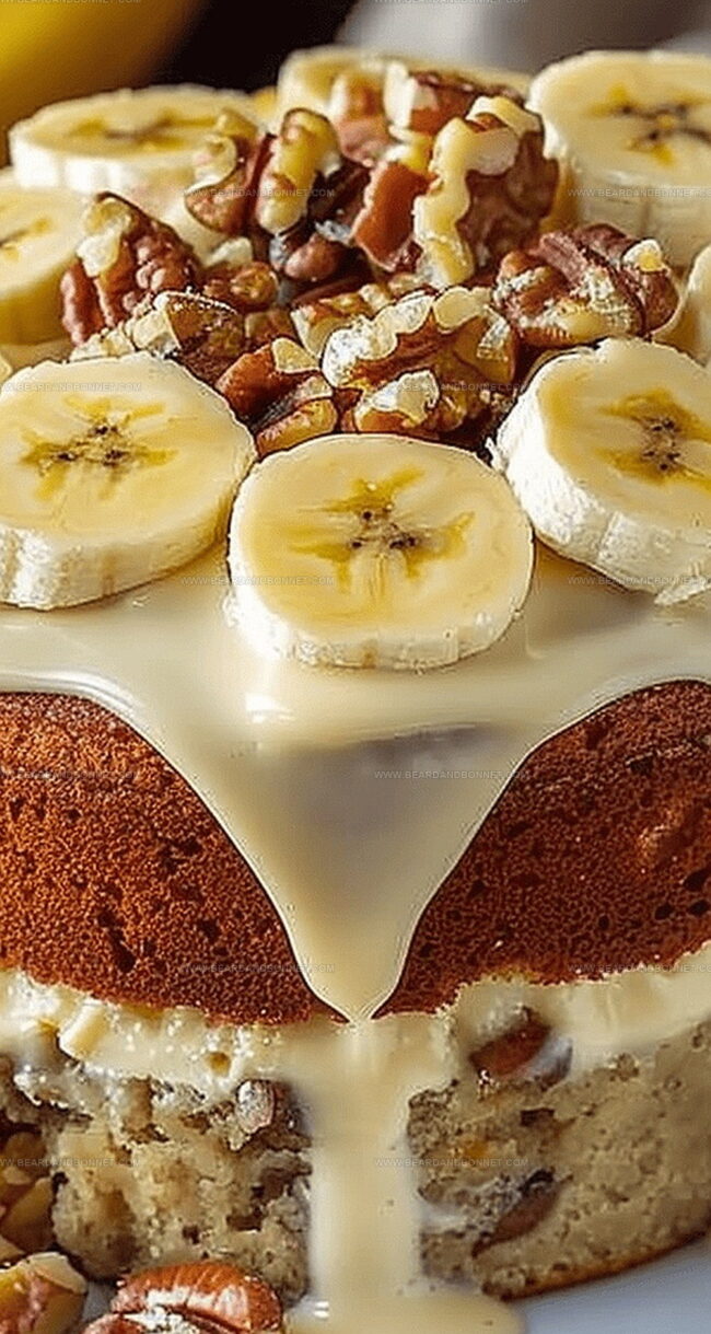 - Final Decoration: Position second cake layer, drizzle remaining custard over the entire cake, and garnish with fresh banana slices and additional walnuts for a visually appealing and delectable finish.